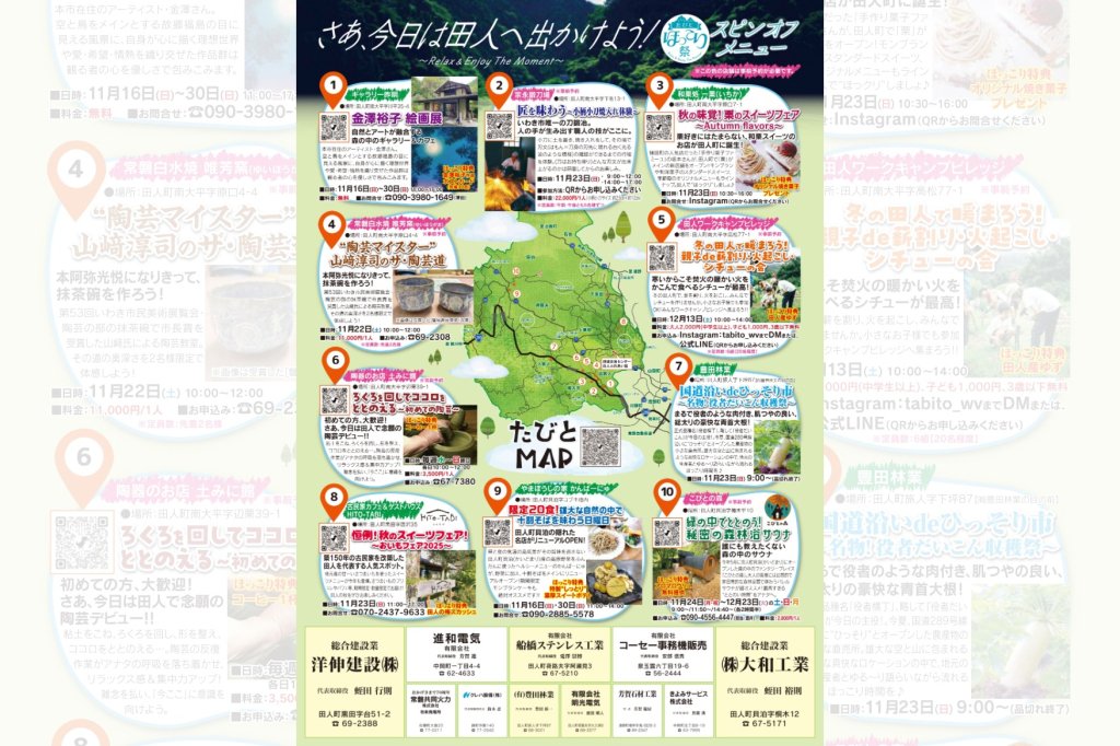 | イベント開催場所 | 地域交流センター 田人ふれあい館 ※スピンオフメニューはチラシ裏面参照 |