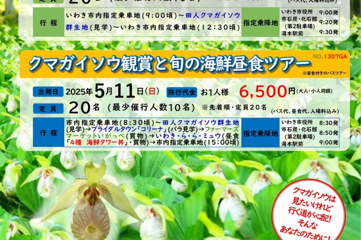 【行程】いわき市内指定乗車地(9:00頃)~田人町クマガイソウ群生地(見学)~いわき市内指定乗車地(12:30頃)