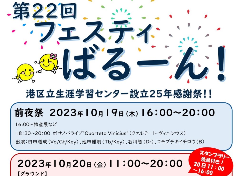 10月19日(木)、20日(金)、港区生涯学習センター(ばるーん)において「第22回フェスティばるーん」が開催されます。