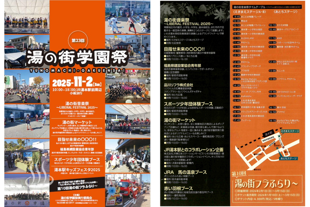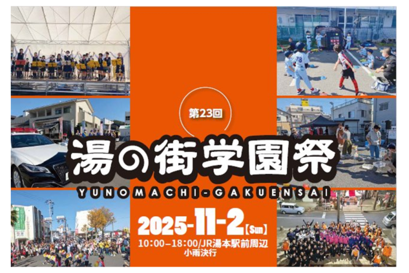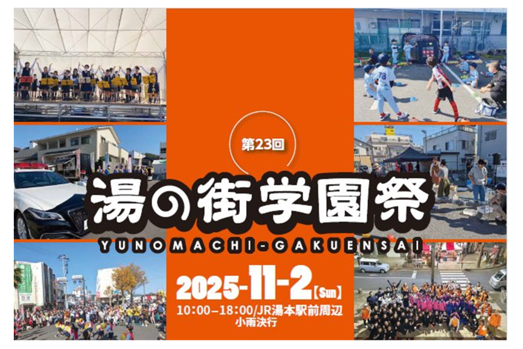 小中高生を中心とした合唱や吹奏楽などが披露される「湯の街音楽祭」、多彩なグルメや物産が楽しめる「湯の街マーケット」、JR湯本駅主催のキッズ向け体験型イベント「湯本駅キッズフェスタ2025」などが行われます。
