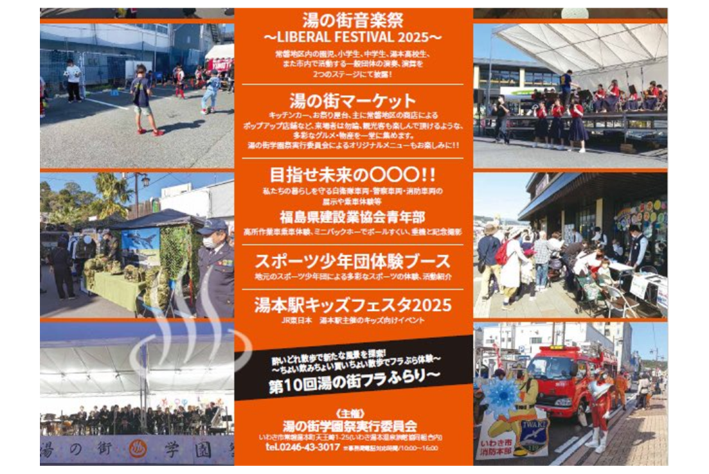 11月2日(日)、JR湯本駅前周辺(常磐湯本町駅前~一番商店街)にて「第23回湯の街学園祭」を開催いたします。