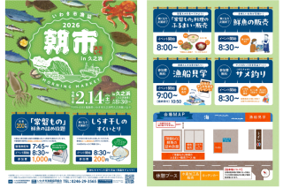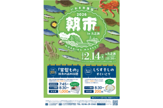 2月14日(土)、久之浜漁港にて、いわき市漁業協同組合・久之浜支所女性部主催のイベント「いわき市漁協 朝市 in 久之浜 2026」が開催されます。