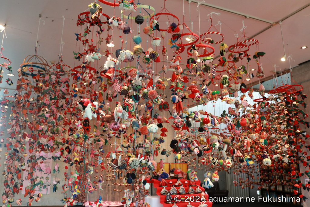 2008年から続くこの展示では、いわき市中之作のちりめん細工教室「ままや」の協力により、子供たちの健やかな成長を願って作られた色鮮やかなつるし飾りが会場を彩ります。