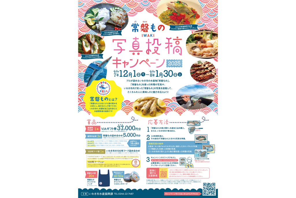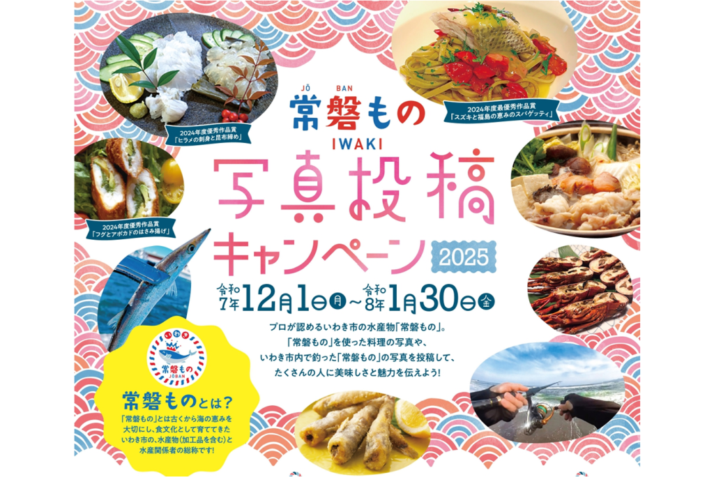 12月1日(月)~2026年1月30日(金)までの期間中、いわき市水産物の魅力をより多くの方に知っていただくため、今年も「常磐もの写真投稿キャンペーン」を開催いたします。