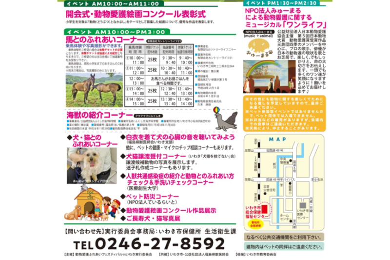 9月28日(日)、いわき市総合保健福祉センターにて、「動物愛護ふれあいフェスティバルinいわき2025」を開催いたします。
