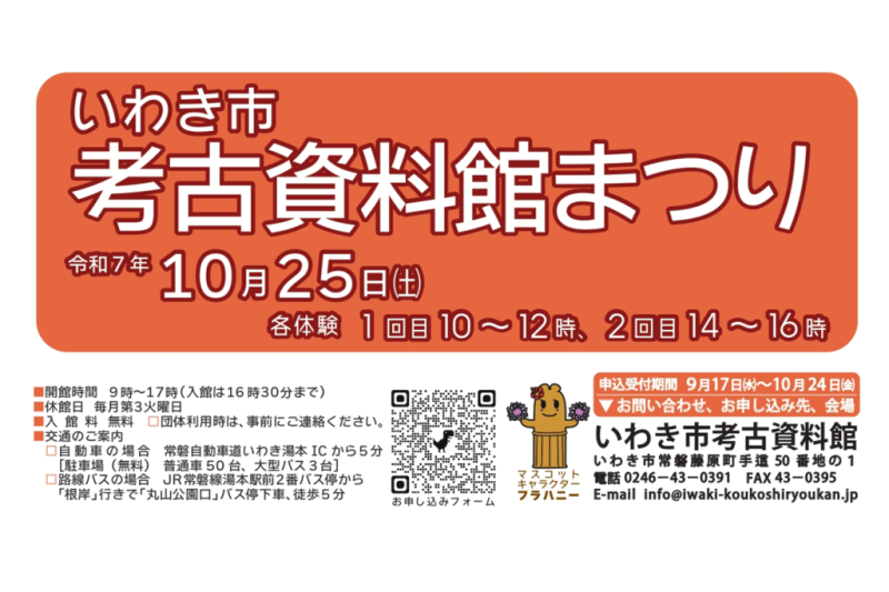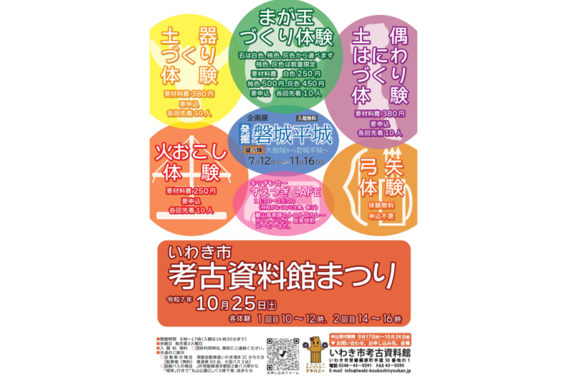 10月25日(土)、いわき市考古資料館にて「いわき市考古資料館まつり」を開催いたします。