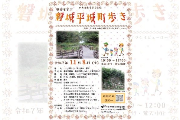 11月8日(土)、磐城平城跡周辺にて、いわきあるき2025「歴史を学ぶ磐城平城町歩き」が開催されます。