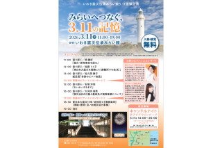 いわき震災伝承みらい館では、あの日を忘れることなく、教訓を次世代へと語り継ぐため、3月11日(水)に追悼企画「みらいへつなぐ、3.11の記憶」を開催いたします。