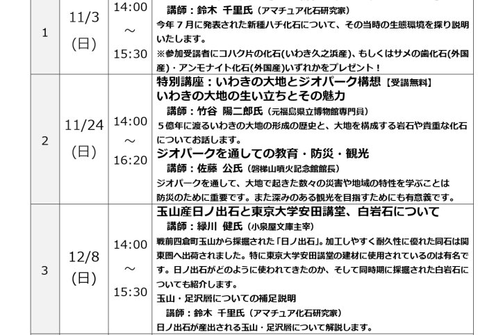 11月3日(日)より地域学講座「キラリ!いわき四倉学~自然科学編~」を全4回に分けて開催いたします。