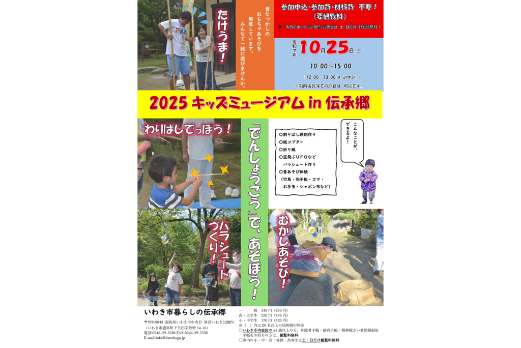 10月25日(土)、いわき市暮らしの伝承郷では「2025キッズミュージアムin 伝承郷」を開催いたします。