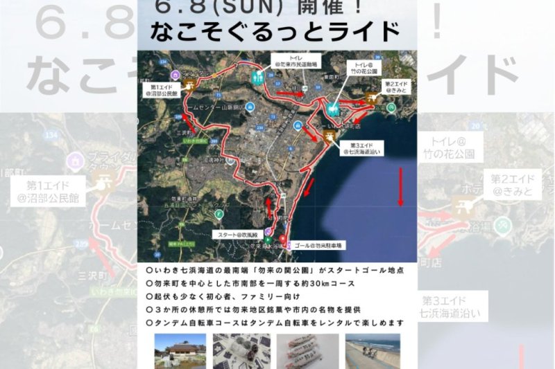 6月8日(日)、勿来町において、「なこそぐるっとライド」が開催されます。