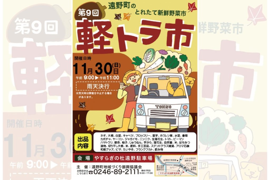 11月30日(日)、遠野町のやすらぎの杜遠野駐車場にて「第9回遠野町軽トラ市」が開催されます。