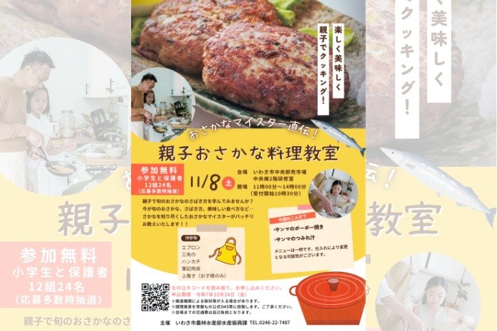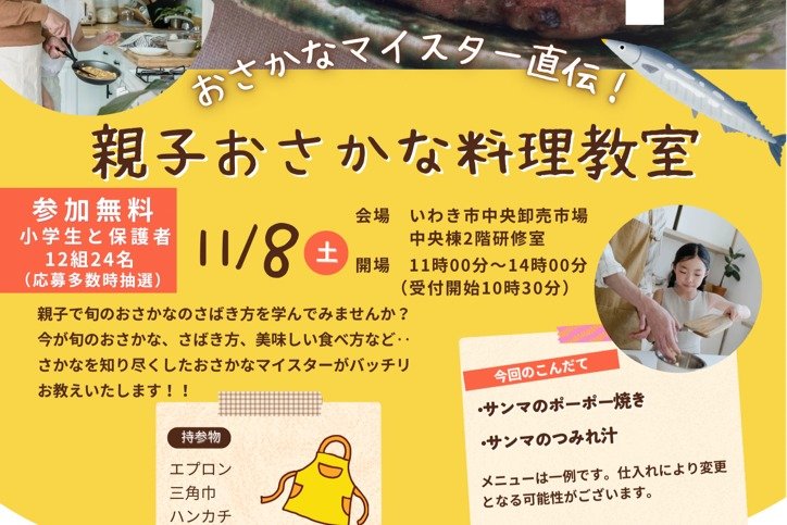 11月8日(土)、いわき市中央卸売市場にて、「親子おさかな料理教室」が開催されます。