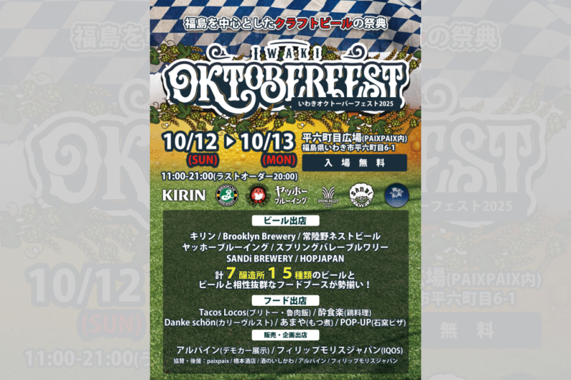 10月12日(日)、13日(月祝)、平六丁目広場にて、「いわきオクトーバーフェスト2025」が開催されます。