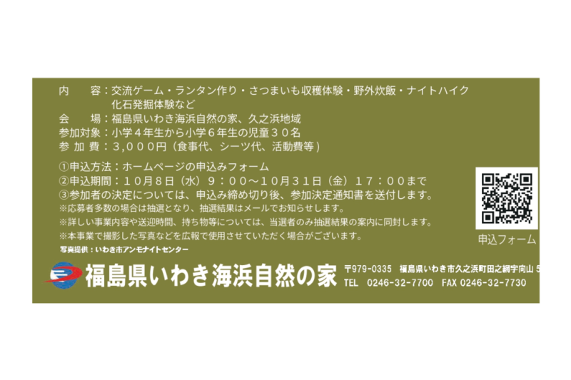 イベント開催場所 | 福島県いわき海浜自然の家 |
