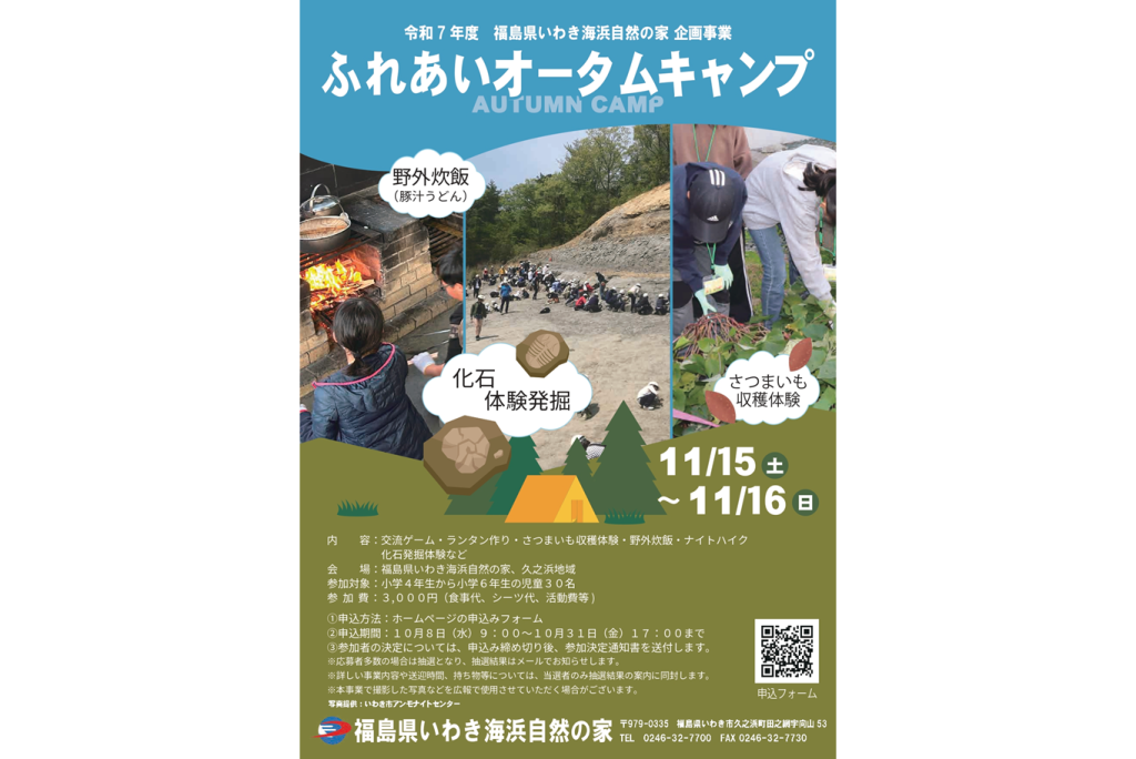 11月15日(土)~16日(日)、福島県いわき海浜自然の家では、令和7年度企画事業「ふれあいオータムキャンプ」を開催します。