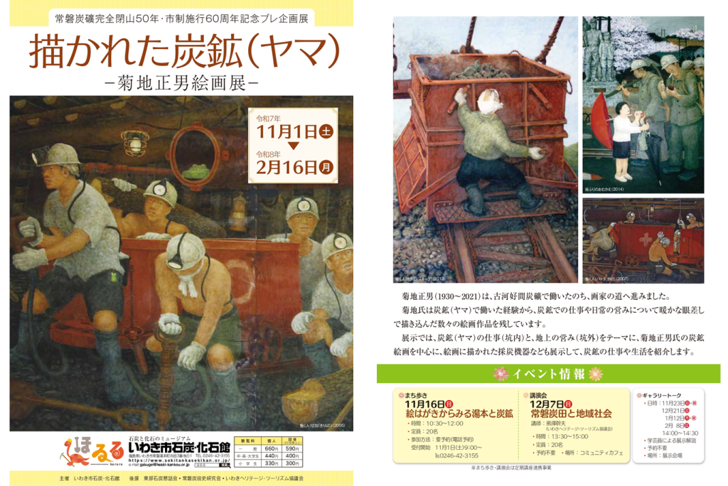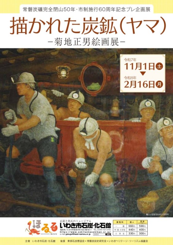 11月1日(土)~2026年2月16日(月)まで、いわき市石炭・化石館ほるるにて、企画展「描かれた炭鉱(ヤマ)-菊地正男絵画展-」を開催します。