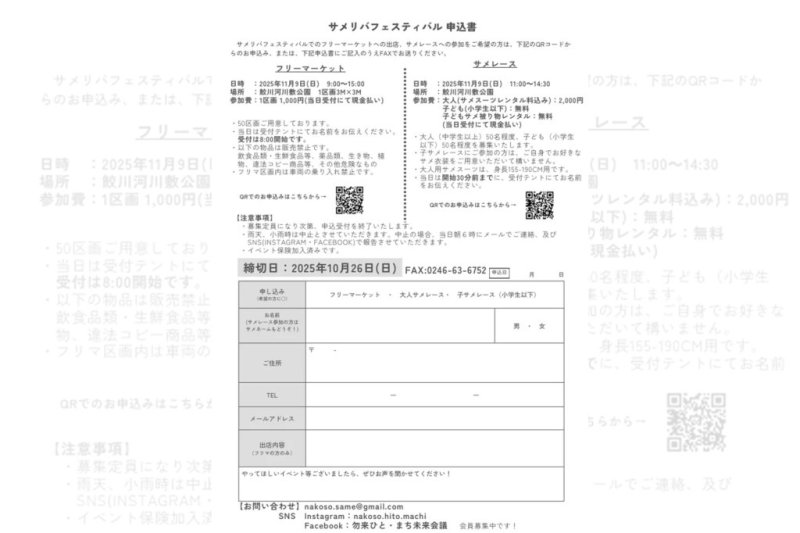 11月9日(日)、鮫川河川敷公園にて、「サメリバフェスティバル」が開催されます。