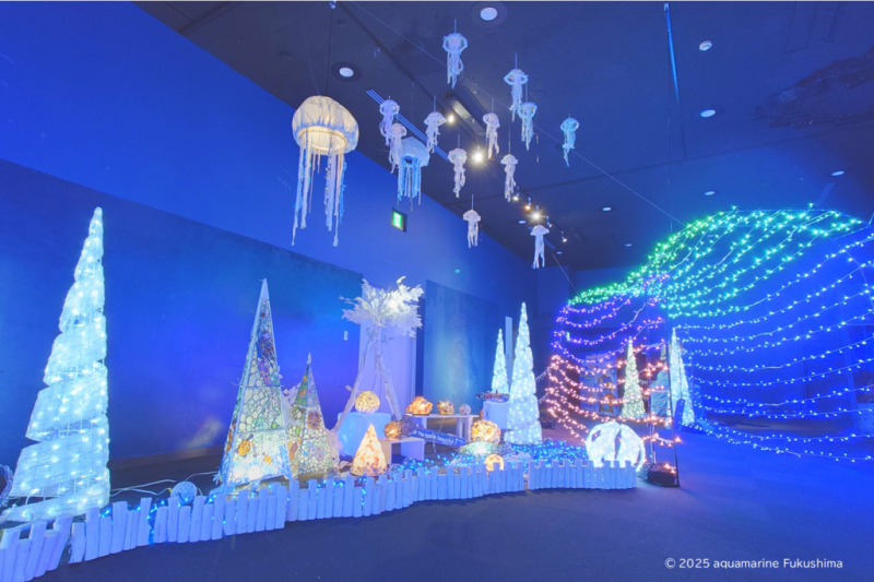 シーラカンスと海の生き物たちがテーマの室内で楽しめるイルミネーションです。海岸の漂着物などを使った「シーボーンアート」作品も展示します。