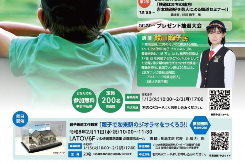 2月11日(水祝)、ラトブにて、鉄活イベント「親子鉄道工作教室」&「鉄活セミナー」が開催されます。