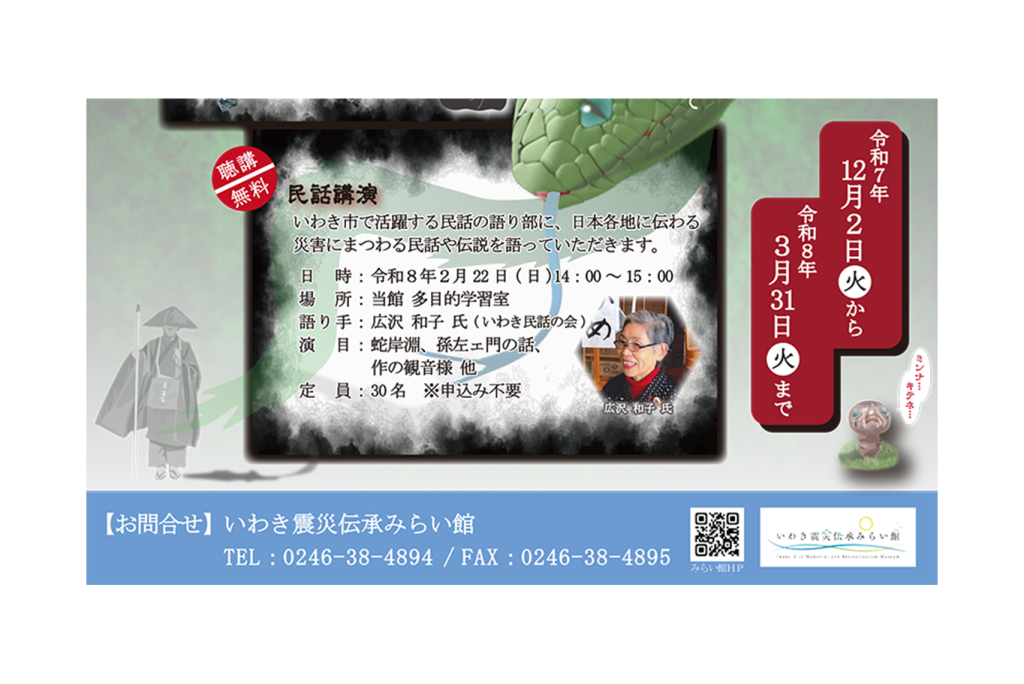 12月2日(火)~2026年3月31日(火)までの期間中、いわき市震災伝承みらい館にて企画展「災害と怪異」を開催いたします。