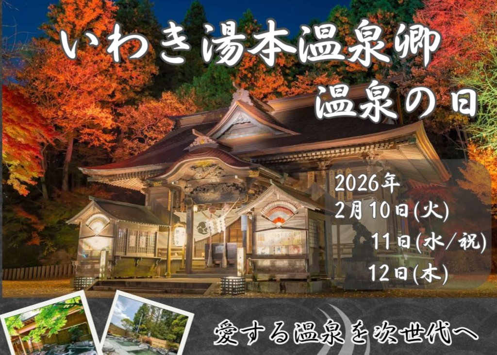 2月10日(火)、11日(水)、12日(木)、今回初めて「いわき湯本温泉郷 温泉の日」を制定し、その取り組みをスタートします。