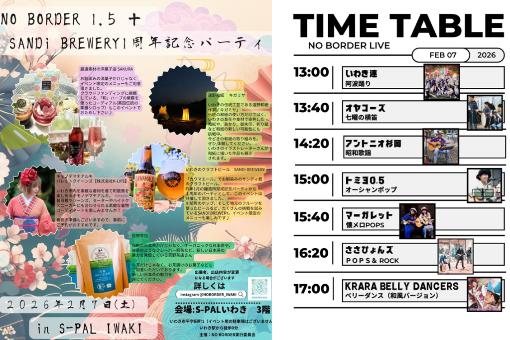2月7日(土)、エスパルいわきにて、「NO BORDER 1.5+」が開催されます。