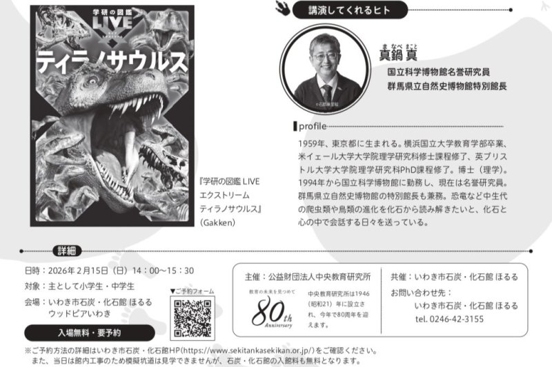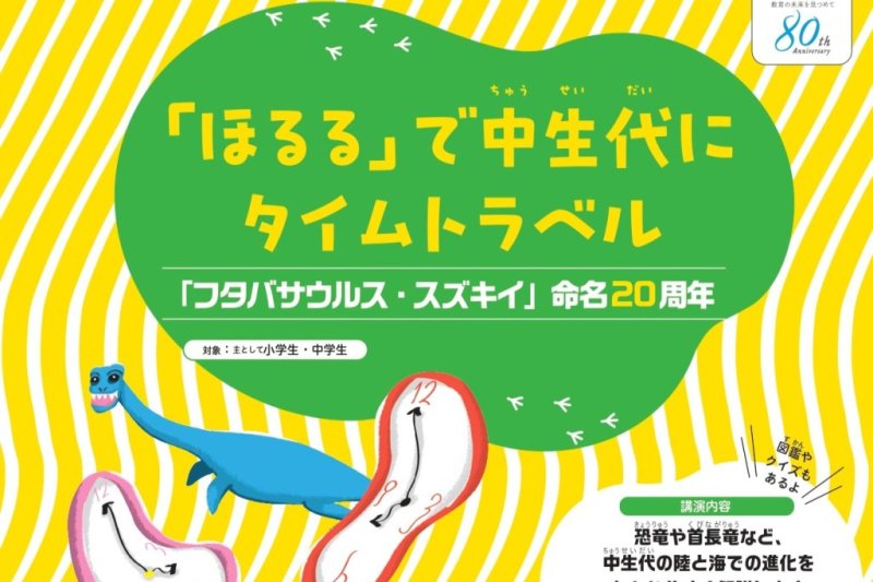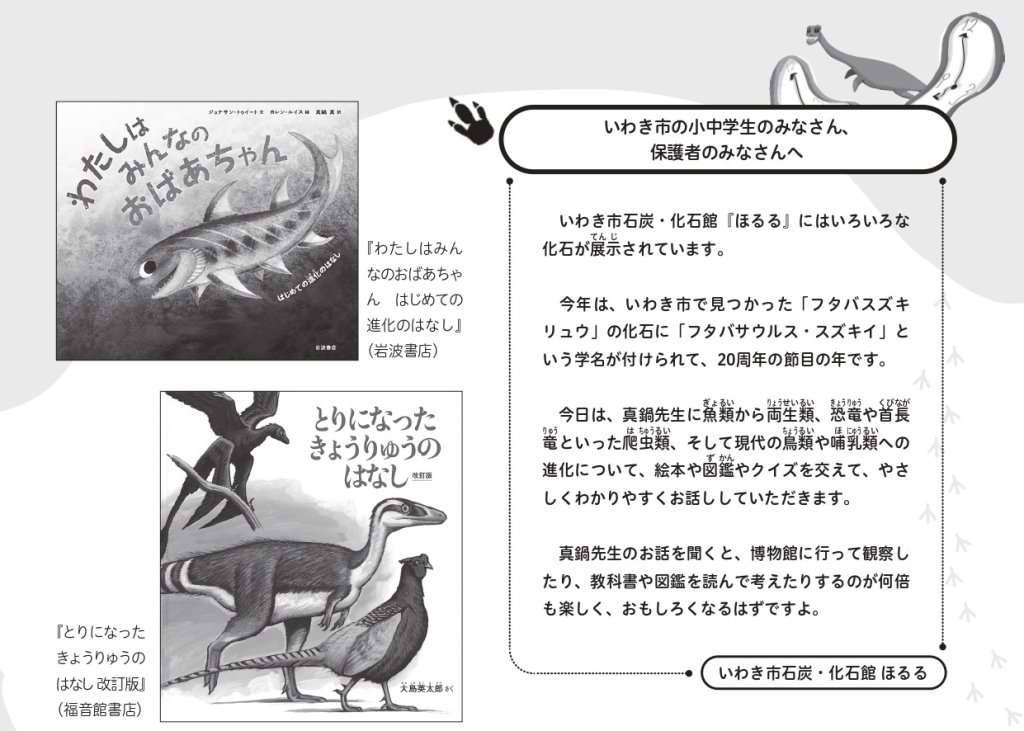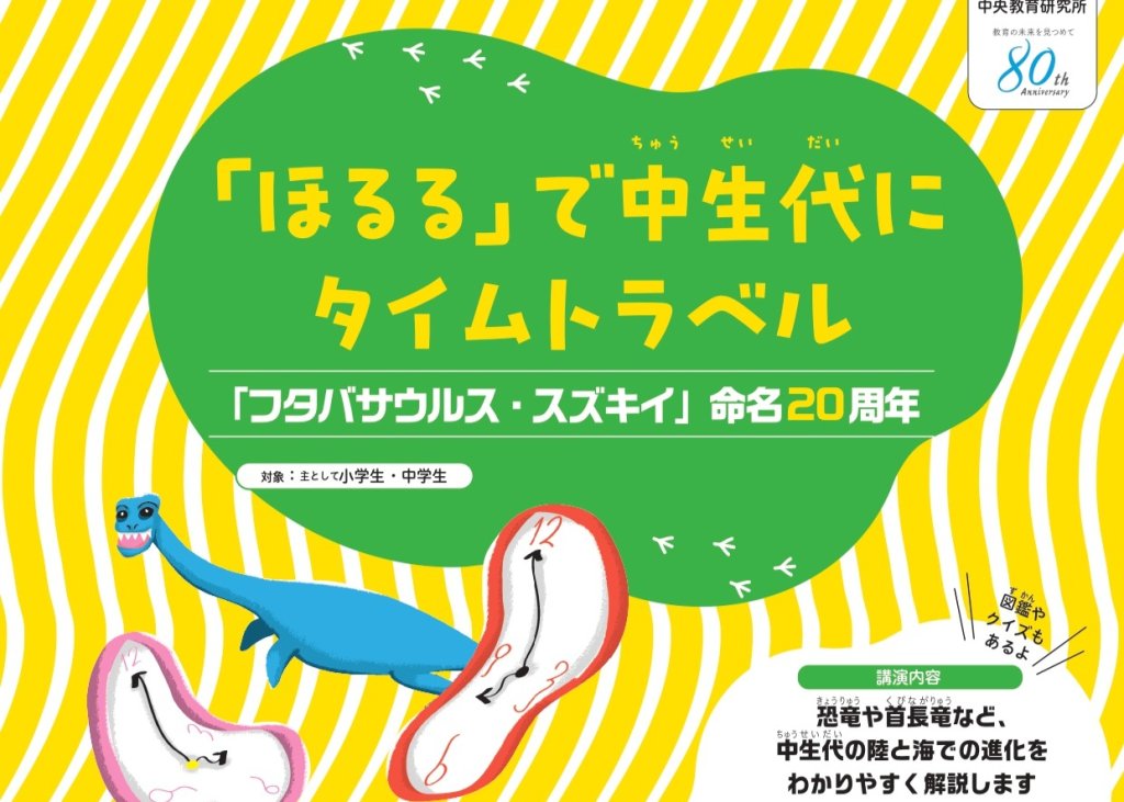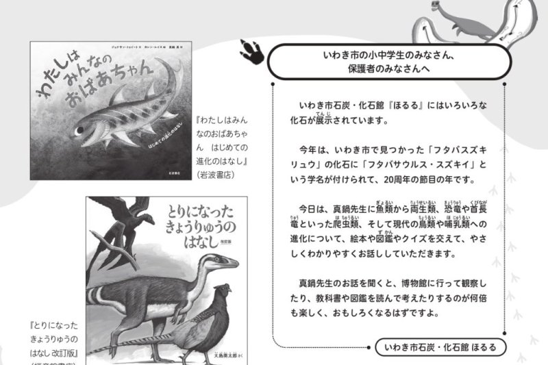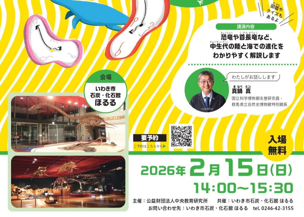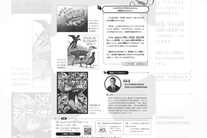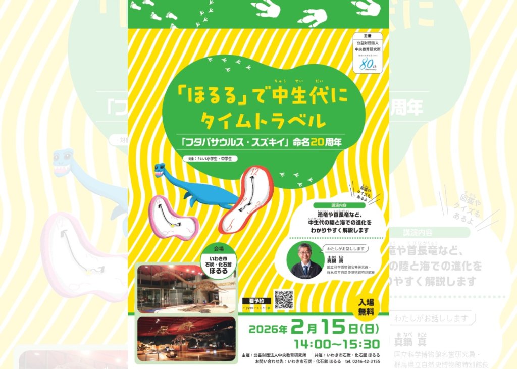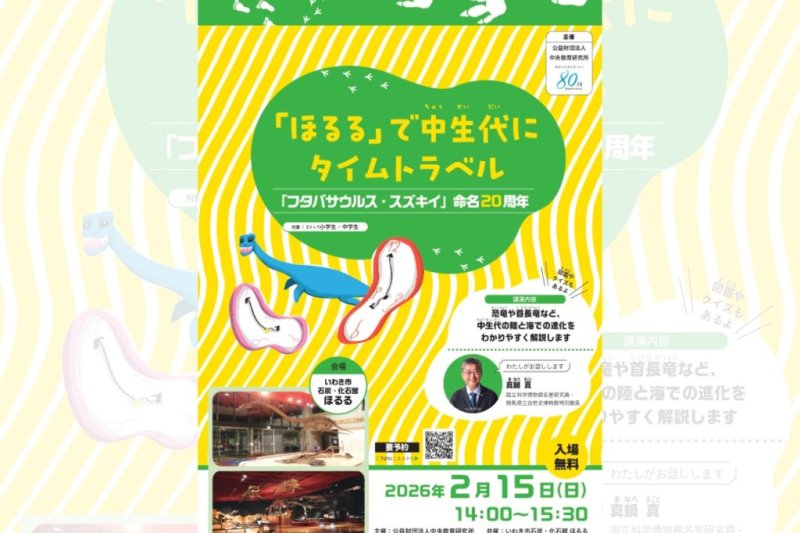 2月15日(日)、いわき市石炭・化石館 ほるるにおいて、「「ほるる」で中生代にタイムトラベル~「フタバサウルス・スズキイ」命名20周年 ~」が開催されます。