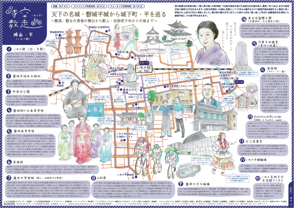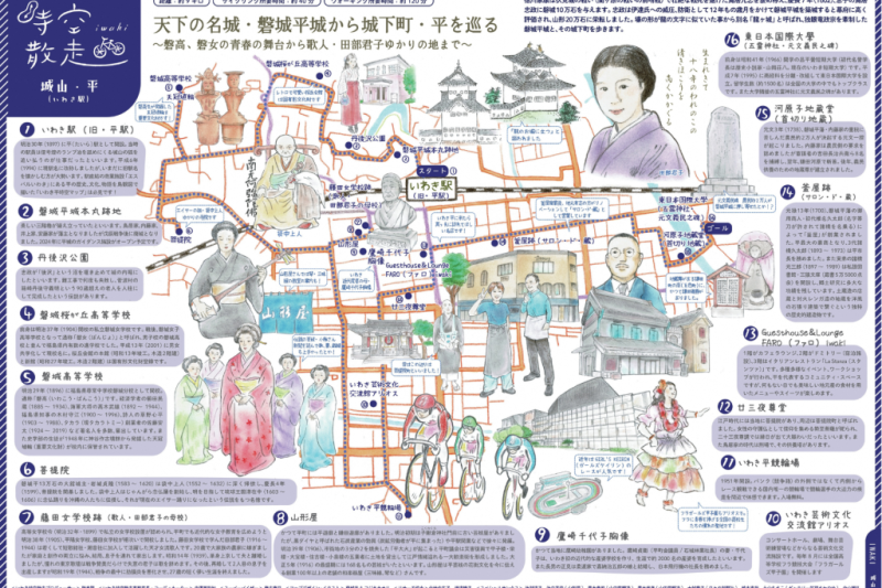 商店街の真ん中にあるゲストハウスFAROに宿泊して、翌日は「いわき時空散走マップ」を片手に、江戸時代から明治・大正~現在まで時空を超えて、ゲストハウススタッフと一緒にまちを巡ります。
