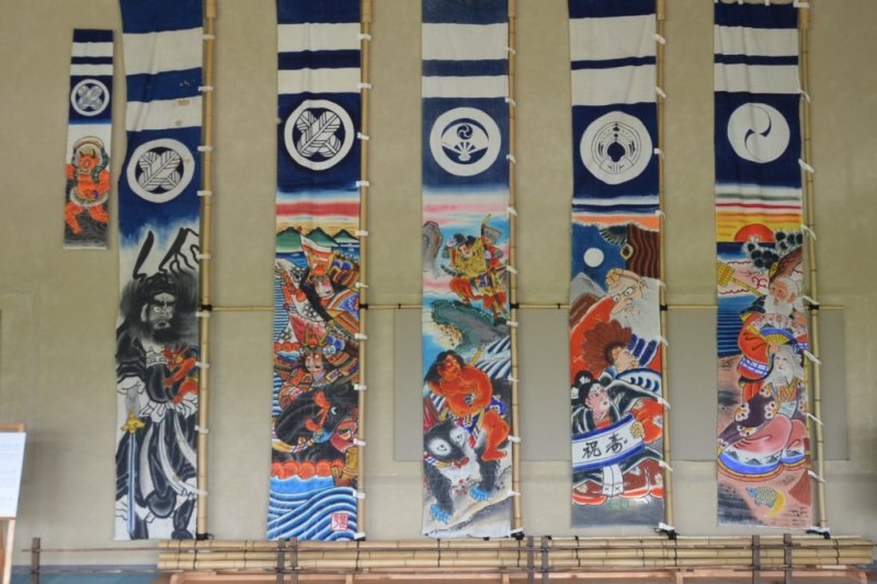 端午の節句に合わせ、市民の方々より寄贈された絵のぼり、鯉のぼり、節句飾りなどを学習管理棟休憩コーナーに展示するとともに、民家ゾーンでは、古民家の軒先に厄除けの菖蒲と蓬を挿します。