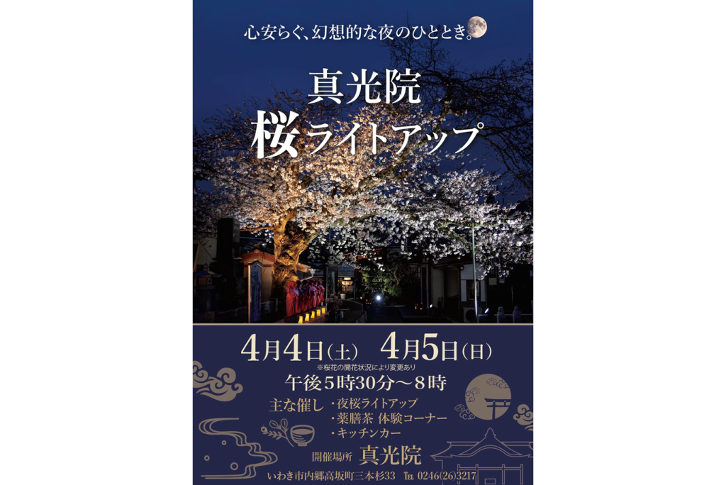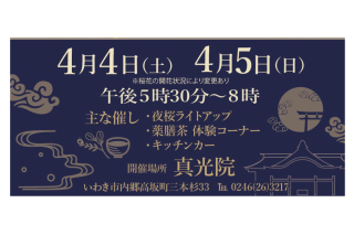 4月4日(土)・5日(日)の2日間、内郷高坂町の真光院にて「桜ライトアップ」が行われます。