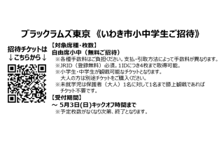 いわき市内の小中学生の皆さまを対象とした無料招待を実施中です。下記の専用サイトより、詳細をご確認のうえお申し込みください。