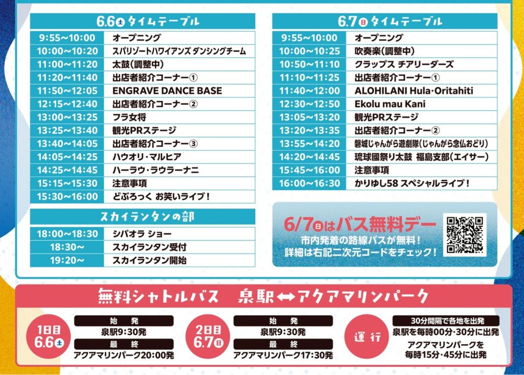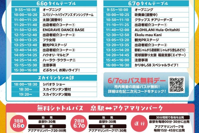 6/6(土)始発 泉駅9:30発 ~ 最終 アクアマリンパーク20:00発