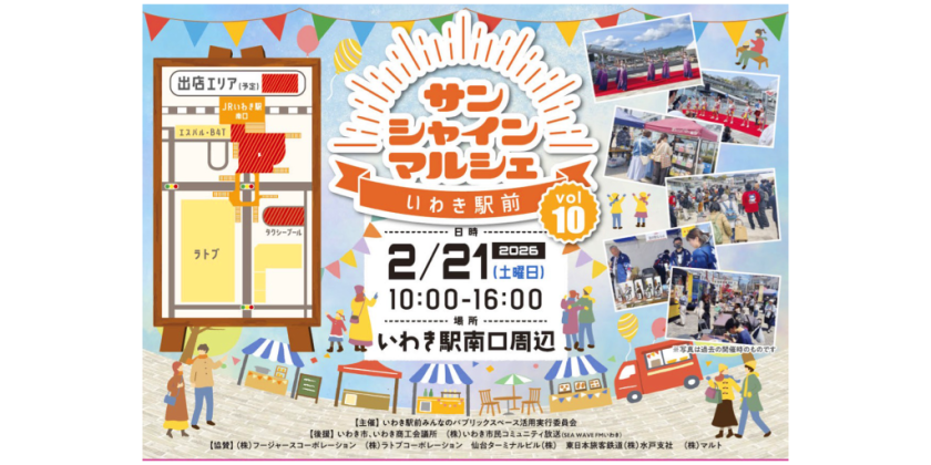 2月21日(土)、いわき駅南口周辺にて「いわき駅前サンシャインマルシェ vol.10」が開催されます。