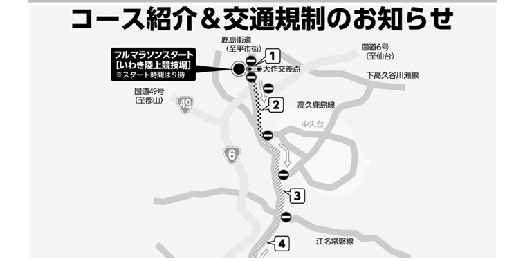 第17回いわきサンシャインマラソン開催に伴い、交通規制を実施します。