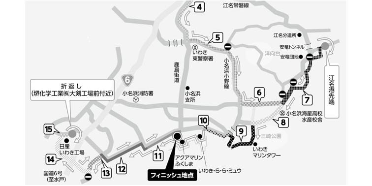 いわき陸上競技場→江名港→小名浜臨海工業団地→小名浜港アクアマリンパーク