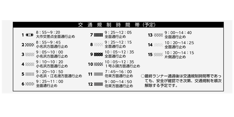 ※最終ランナー通過後は交通規制時間帯であっても、安全が確認でき次第、交通規制を順次解除する予定です。
