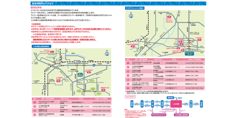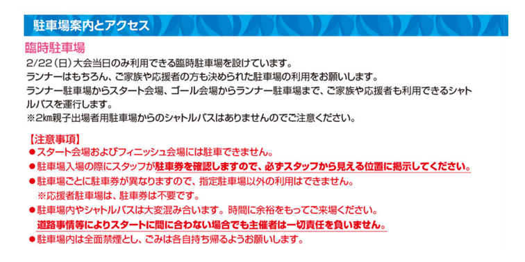 ・2月22日(日)大会当日のみ利用できる臨時駐車場を設けていますので、決められた駐車場の利用をお願いいたします。