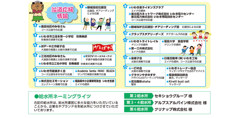・日産自動車(株)いわき工場 エイドの提供、コース沿道での応援