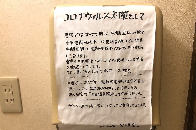 また、トイレの貼り紙を読む限り、徹底したコロナ対策もされていますね。さらに、いわき市のあんしんコロナお知らせシステムの登録店でもあるので、テーブルに置いてあるQRコードを読み取って空メールをさくっとおくるのを忘れずに!