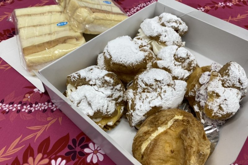 ジャンボメニューといえばこれ!白土屋菓子店の名物、超特大のジャンボシュークリーム!直径25cm以上、重さ1,2kgを誇るその大きさは、なんと一般的なホールケーキよりも大きい衝撃的なサイズとなっています。